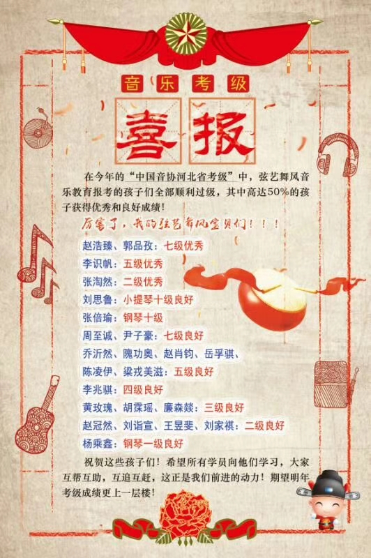 恭喜考级顺利通过的孩子们,特别祝贺考级优秀的孩子们!向你们学习,正是因为有你们的存在,我们才有前进的动力。