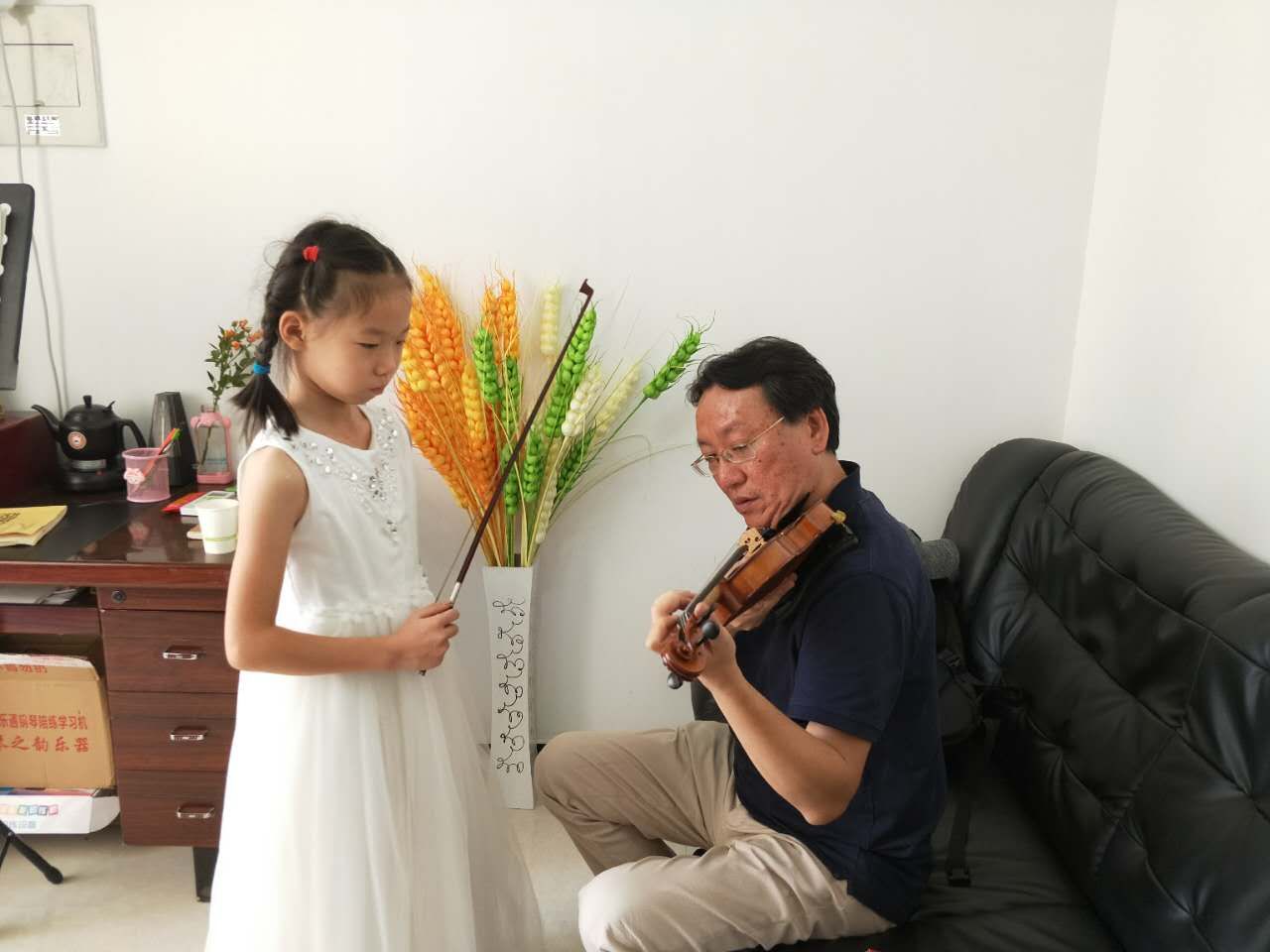 童老师手把手指导弦艺舞风的小学员提高琴艺!